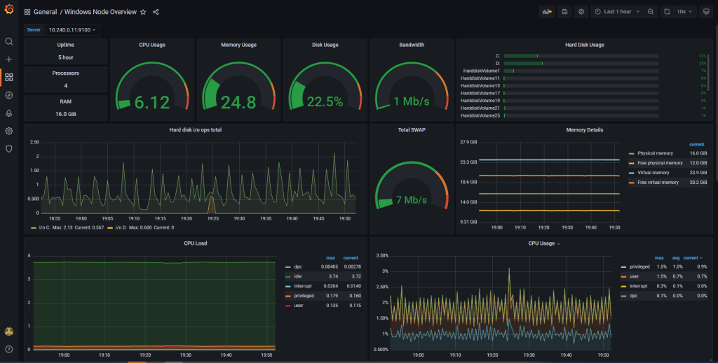 In this section I am going to describe how to export and collect host metrics from Windows nodes in the AKS cluster. Containers running on Windows node, where Sitecore containers run too, cannot run in privileged mode and so don’t have root permission capabilities on the node to collect metrics from the host machine. For this reason, a Prometheus node exporter running on a Windows node would fail.